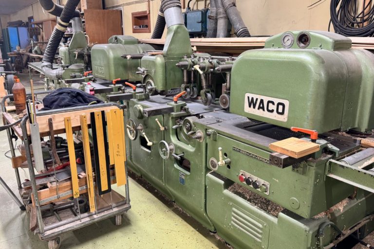Vi har en stor industrihyvel där vi kan hyvla plank, bräder, panel eller lister.