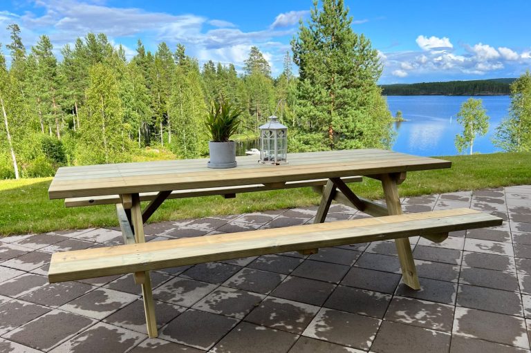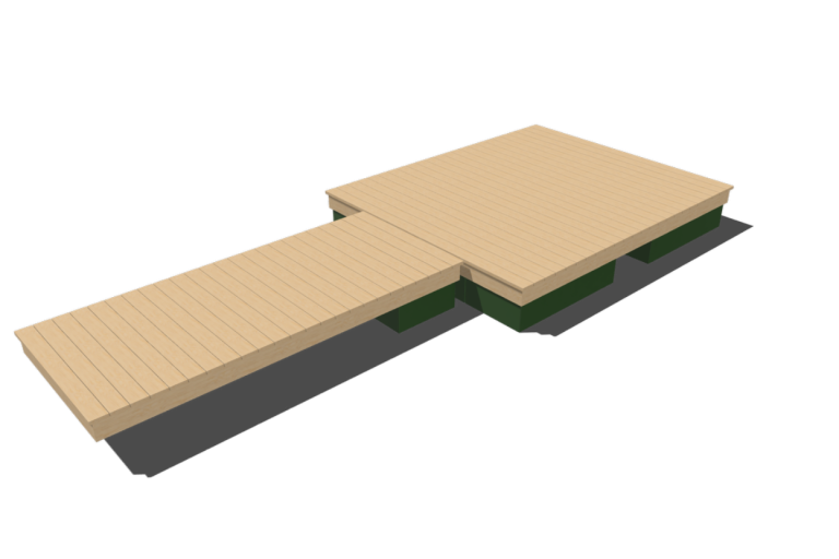 Välbyggd brygga i tryckimpregnerat virke, formgjutna täta pontoner och galvade beslag.